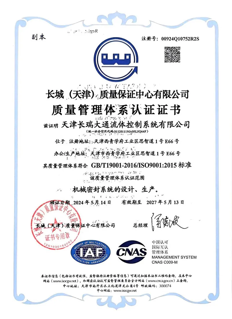 Наша компания соответствует требованиям сертификации ISO 9001 и получила сертификаты, подтверждающие соответствие стандартам системы менеджмента качества, системы профессиональной безопасности и гигиены труда, а также системы экологического менеджмента. Предприятие соответствует стандартам API 682 и ASME B16.20, что демонстрирует стабильную и надёжную работу нашего оборудования даже в условиях экстремально высоких или сверхнизких температур, высокого давления и агрессивных рабочих сред. Именно поэтому продукция компании заслужила высокую оценку со стороны клиентов.